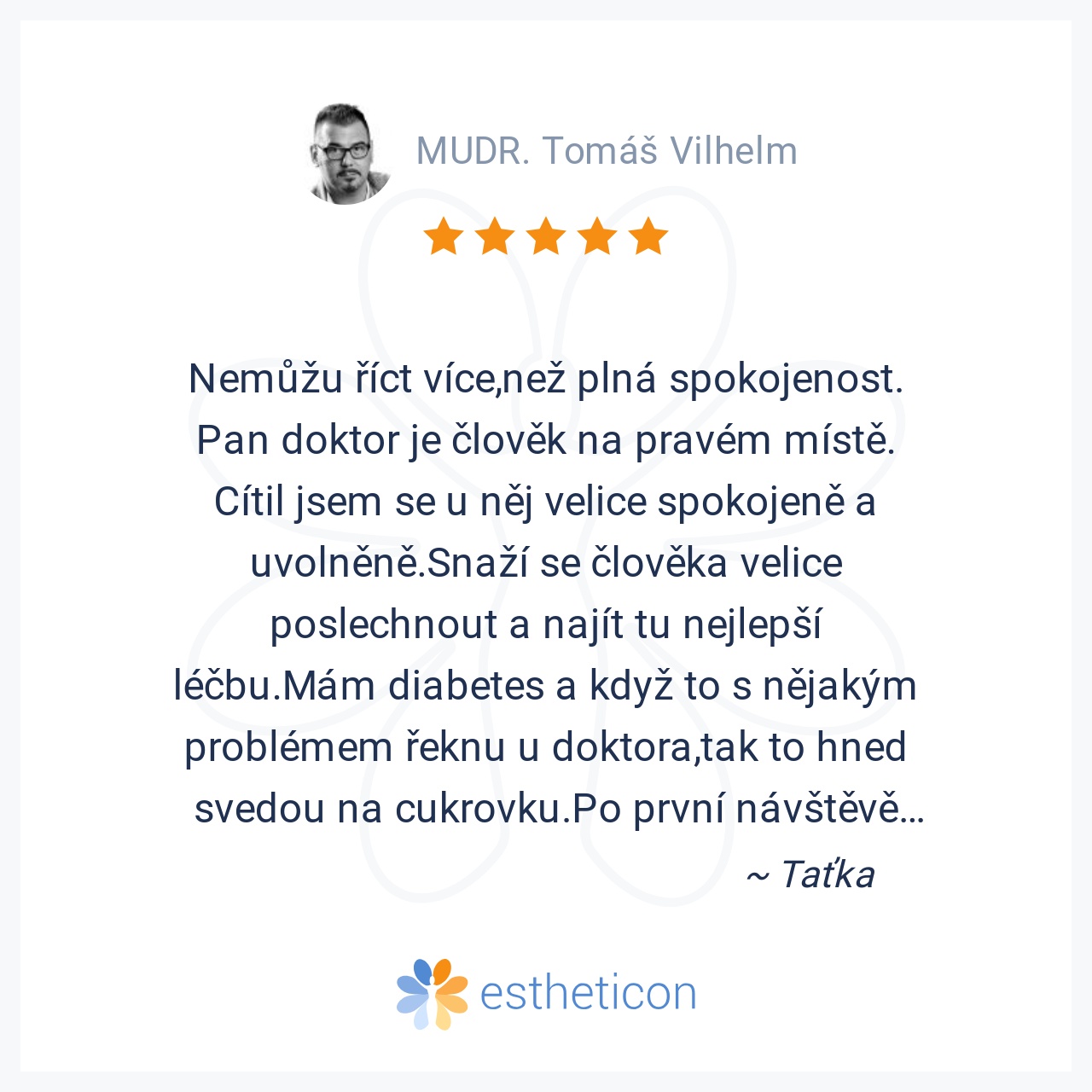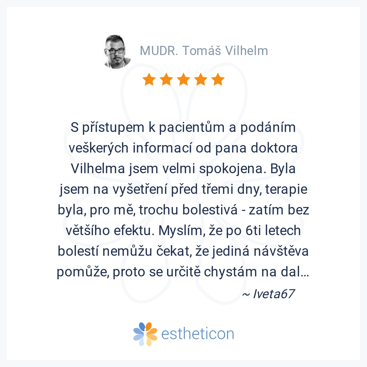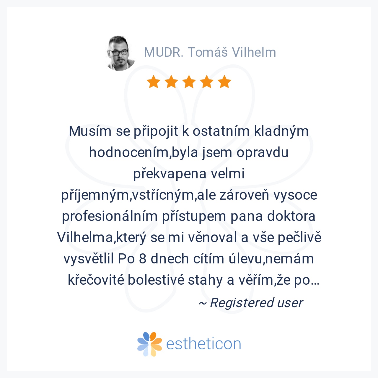 Musím se připojit k ostatním kladným hodnocením,byla jsem opravdu překvapena velmi příjemným,vstřícným,ale zároveň vysoce profesionálním přístupem pana doktora Vilhelma,který se mi věnoval a vše pečlivě vysvětlil Po 8 dn... Více