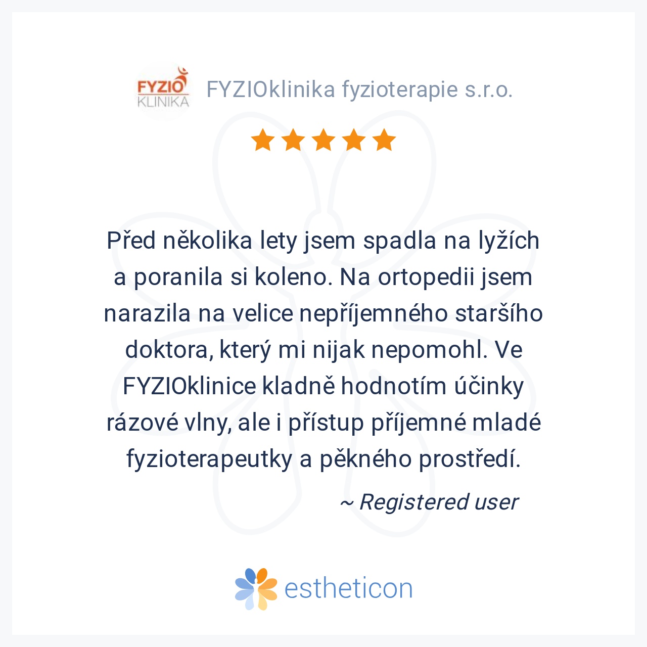 Před několika lety jsem spadla na lyžích a poranila si koleno. Na ortopedii jsem narazila na velice nepříjemného staršího doktora, který mi nijak nepomohl. Ve FYZIOklinice kladně hodnotím účinky rázové vlny, ale i přístu... Více