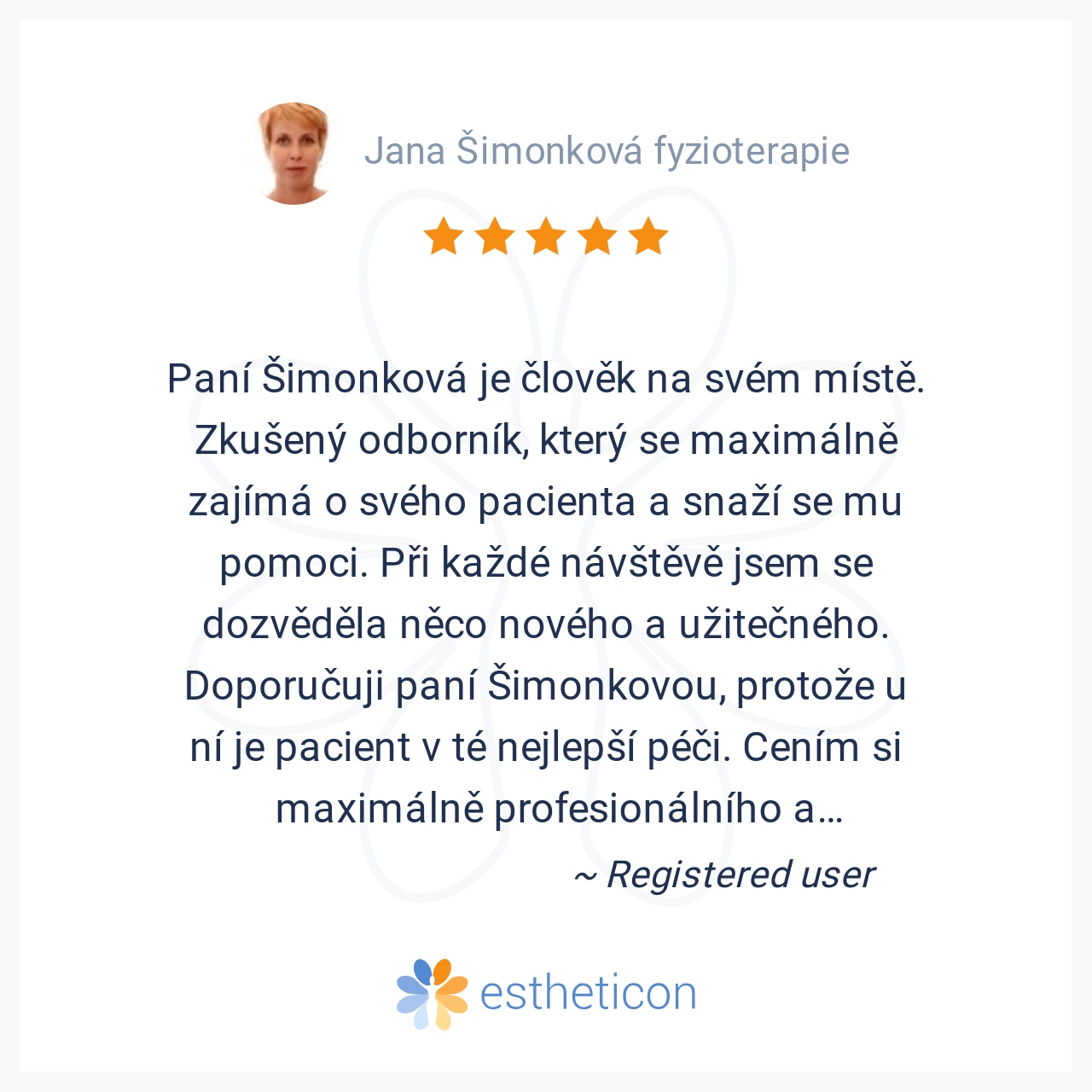 Paní Šimonková je člověk na svém místě. Zkušený odborník, který se maximálně zajímá o svého pacienta a snaží se mu pomoci. Při každé návštěvě jsem se dozvěděla něco nového a užitečného. Doporučuji paní Šimonkovou, protož... Více