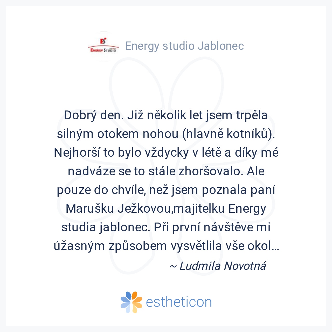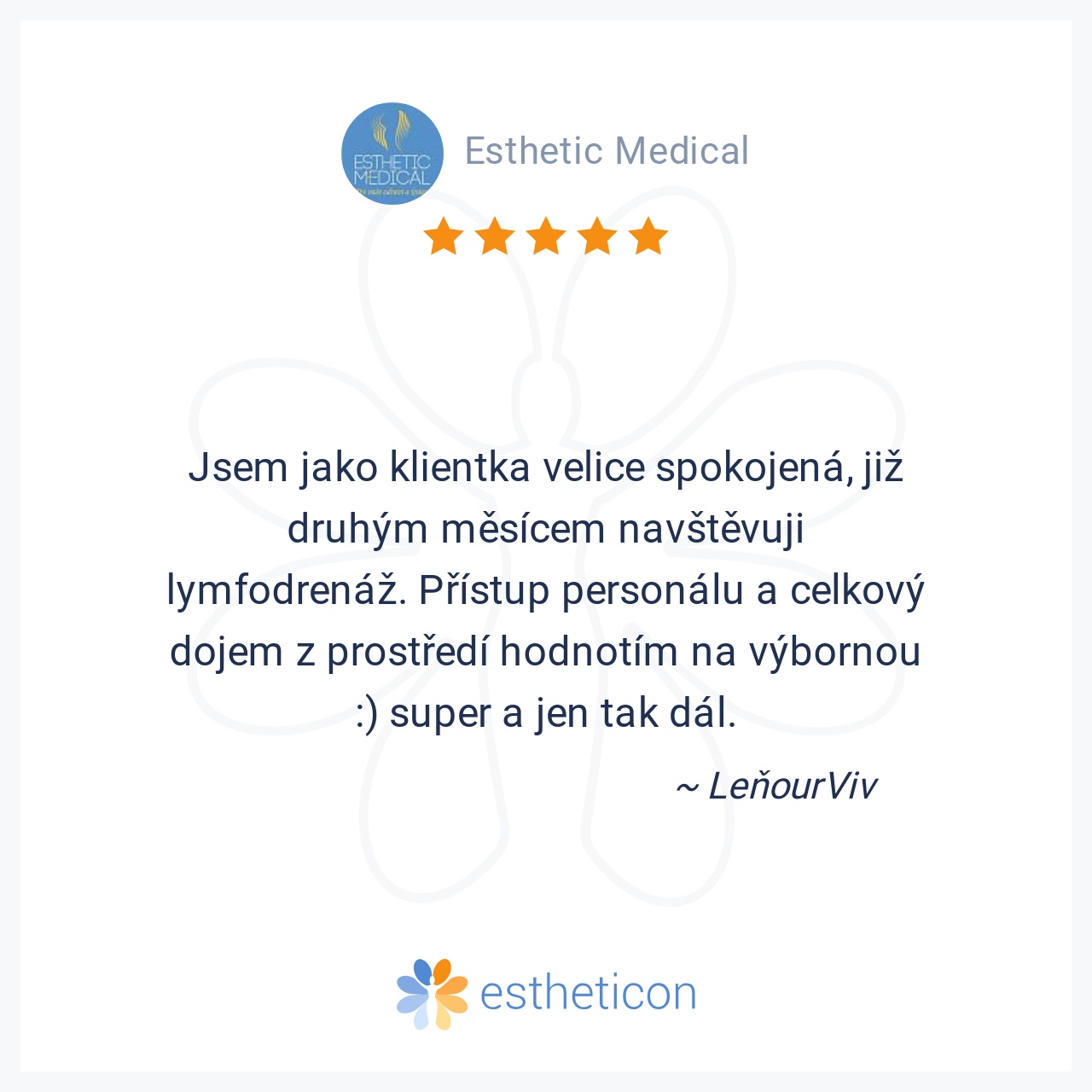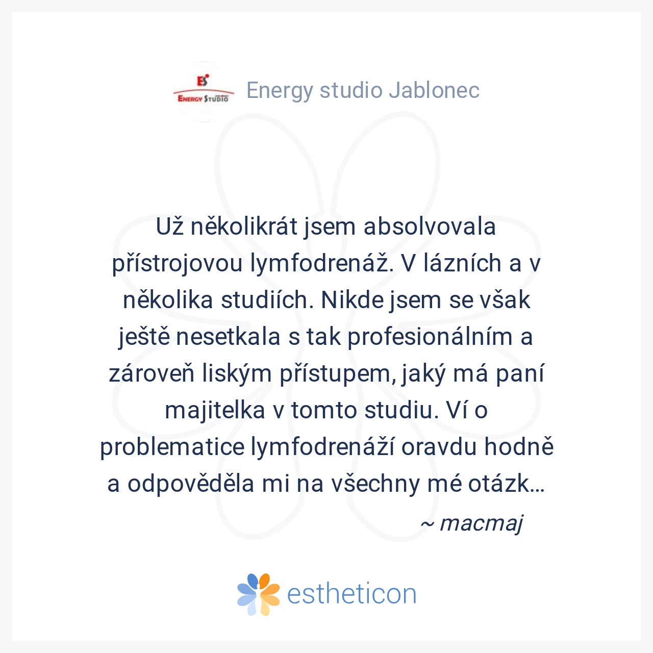 Jsem jako klientka velice spokojená, již druhým měsícem navštěvuji lymfodrenáž. Přístup personálu a celkový dojem z prostředí hodnotím na výbornou :) super a jen tak dál.