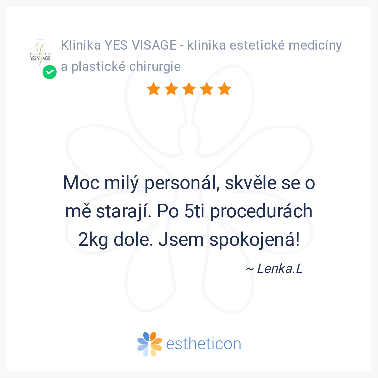 Moc milý personál, skvěle se o mě starají. Po 5ti procedurách 2kg dole. Jsem spokojená!