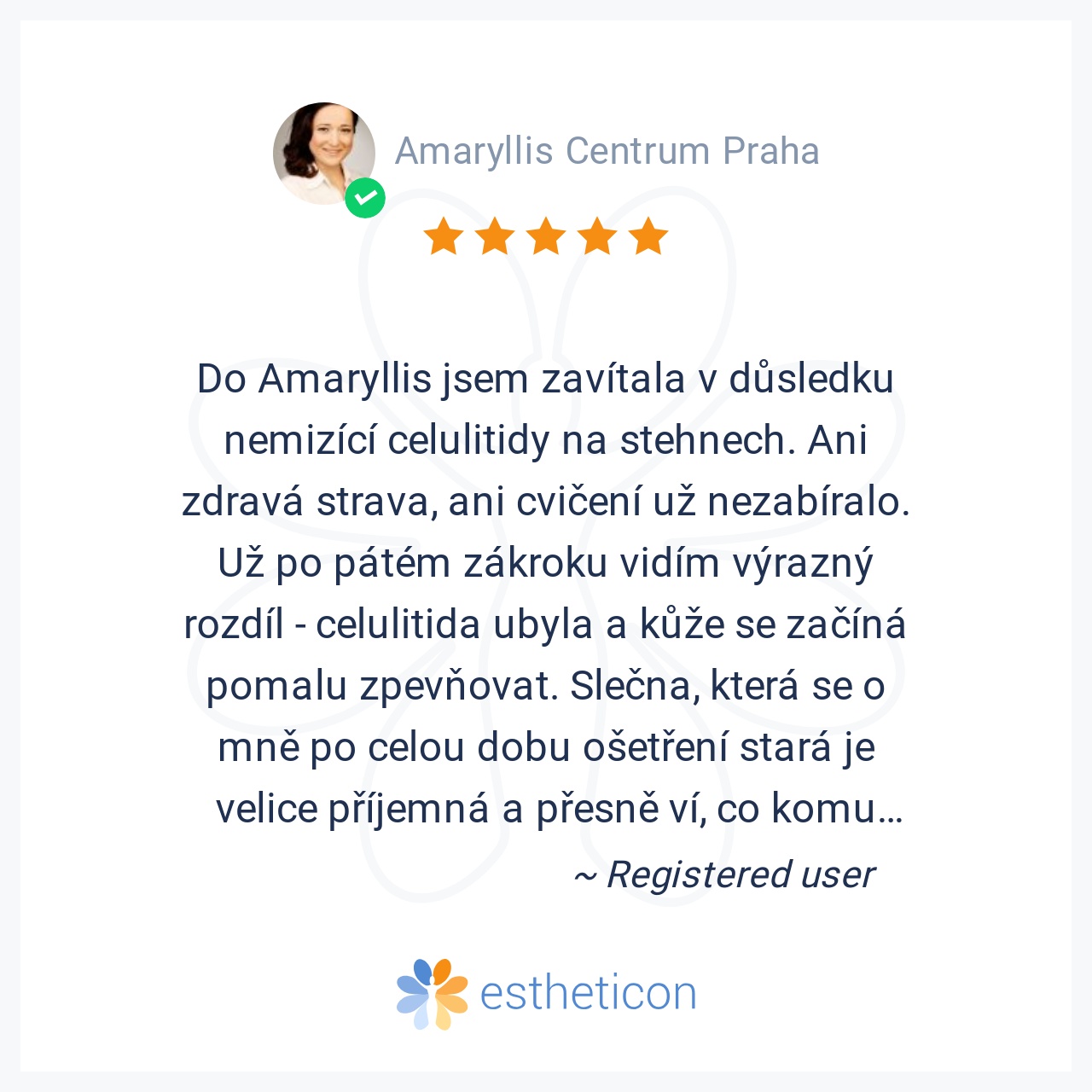 Do Amaryllis jsem zavítala v důsledku nemizící celulitidy na stehnech. Ani zdravá strava, ani cvičení už nezabíralo. Už po pátém zákroku vidím výrazný rozdíl - celulitida ubyla a kůže se začíná pomalu zpevňovat. Slečna, ... Více