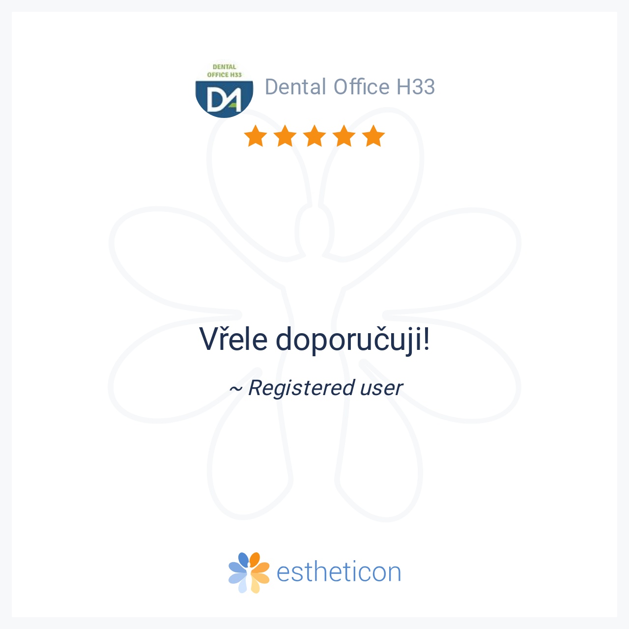 Úžasný a profesionální přístup. Velmi vstřícný a příjemný personál. Hezké prostředí kliniky na mě zapůsobilo velmi uklidňujícím dojmem. Bezbolestná dentální hygiena. Odcházela jsem maximálně spokojená. Děkuji a můžu jen ... Více