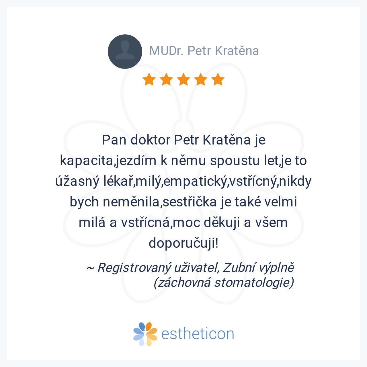 Pan doktor Petr Kratěna je kapacita,jezdím k němu spoustu let,je to úžasný lékař,milý,empatický,vstřícný,nikdy bych neměnila,sestřička je také velmi milá a vstřícná,moc děkuji a všem doporučuji!