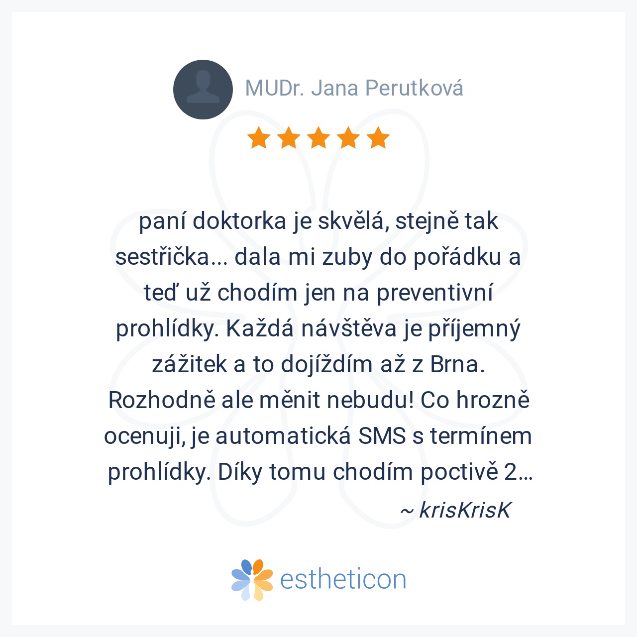 paní doktorka je skvělá, stejně tak sestřička... dala mi zuby do pořádku a teď už chodím jen na preventivní prohlídky. Každá návštěva je příjemný zážitek a to dojíždím až z Brna. Rozhodně ale měnit nebudu! Co hrozně ocen... Více