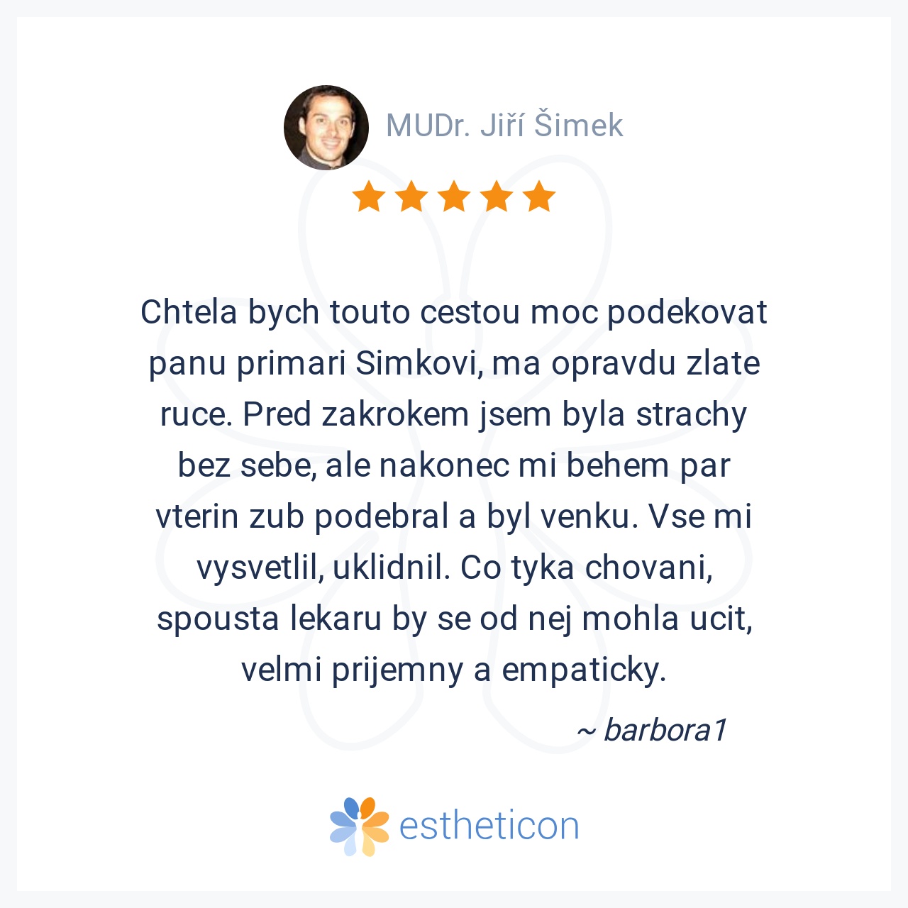 Chtela bych touto cestou moc podekovat panu primari Simkovi, ma opravdu zlate ruce. Pred zakrokem jsem byla strachy bez sebe, ale nakonec mi behem par vterin zub podebral a byl venku. Vse mi vysvetlil, uklidnil. Co tyka ... Více