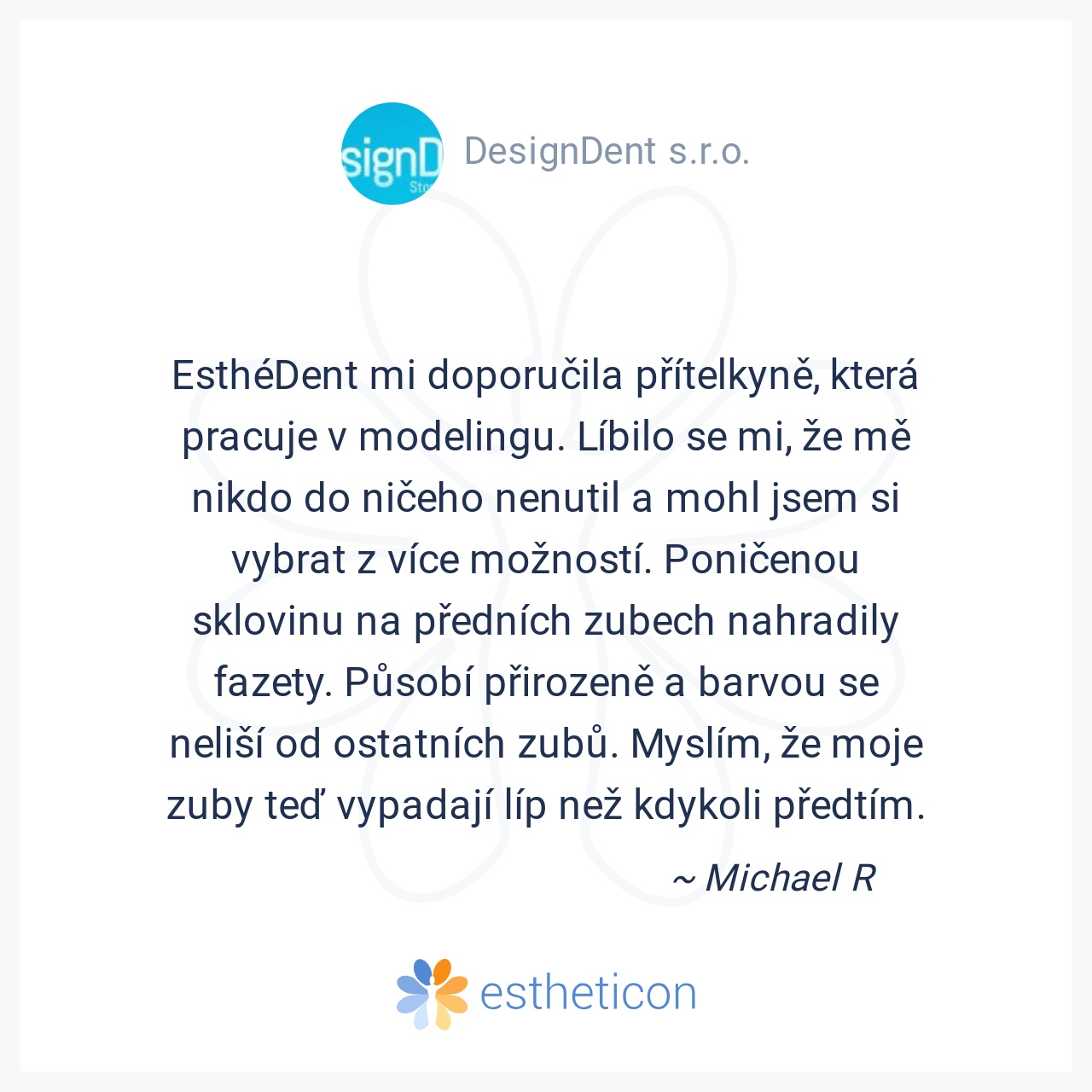 EsthéDent mi doporučila přítelkyně, která pracuje v modelingu. Líbilo se mi, že mě nikdo do ničeho nenutil a mohl jsem si vybrat z více možností. Poničenou sklovinu na předních zubech nahradily fazety. Působí přirozeně a... Více