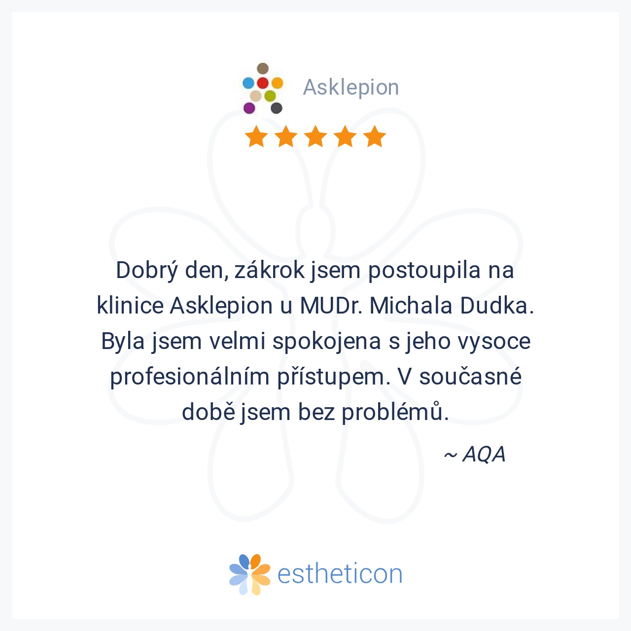 Dobrý den, zákrok jsem postoupila na klinice Asklepion u MUDr. Michala Dudka. Byla jsem velmi spokojena s jeho vysoce profesionálním přístupem. V současné době jsem bez problémů.