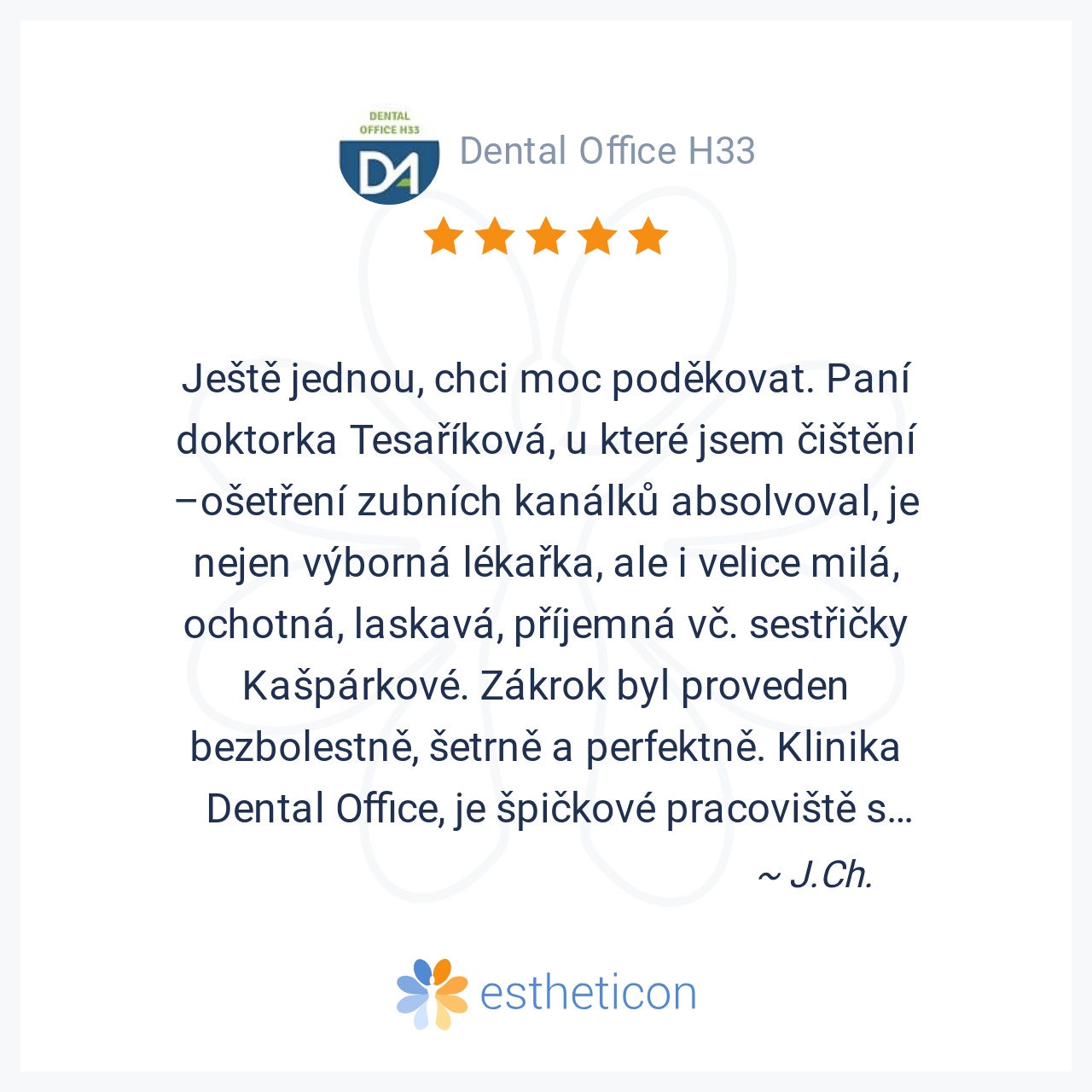 Ještě jednou, chci moc poděkovat. Paní doktorka Tesaříková, u které jsem čištění –ošetření zubních kanálků absolvoval, je nejen výborná lékařka, ale i velice milá, ochotná, laskavá, příjemná vč. sestřičky Kašpárkové. Zák... Více