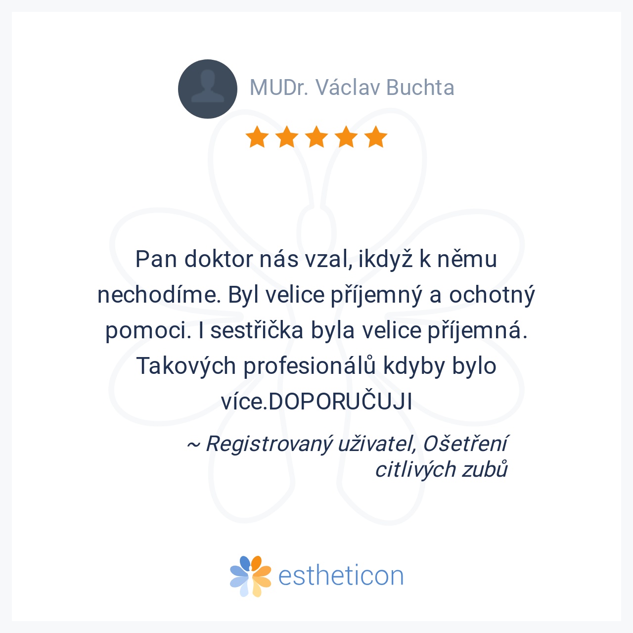 Přihlaste se k odběru novinek k zákroku Ošetření citlivých zubů. Budete dostávat nové recenze pacientů, fotky před-po, aktuální diskuze. Odběr můžete kdykoli zrušit.