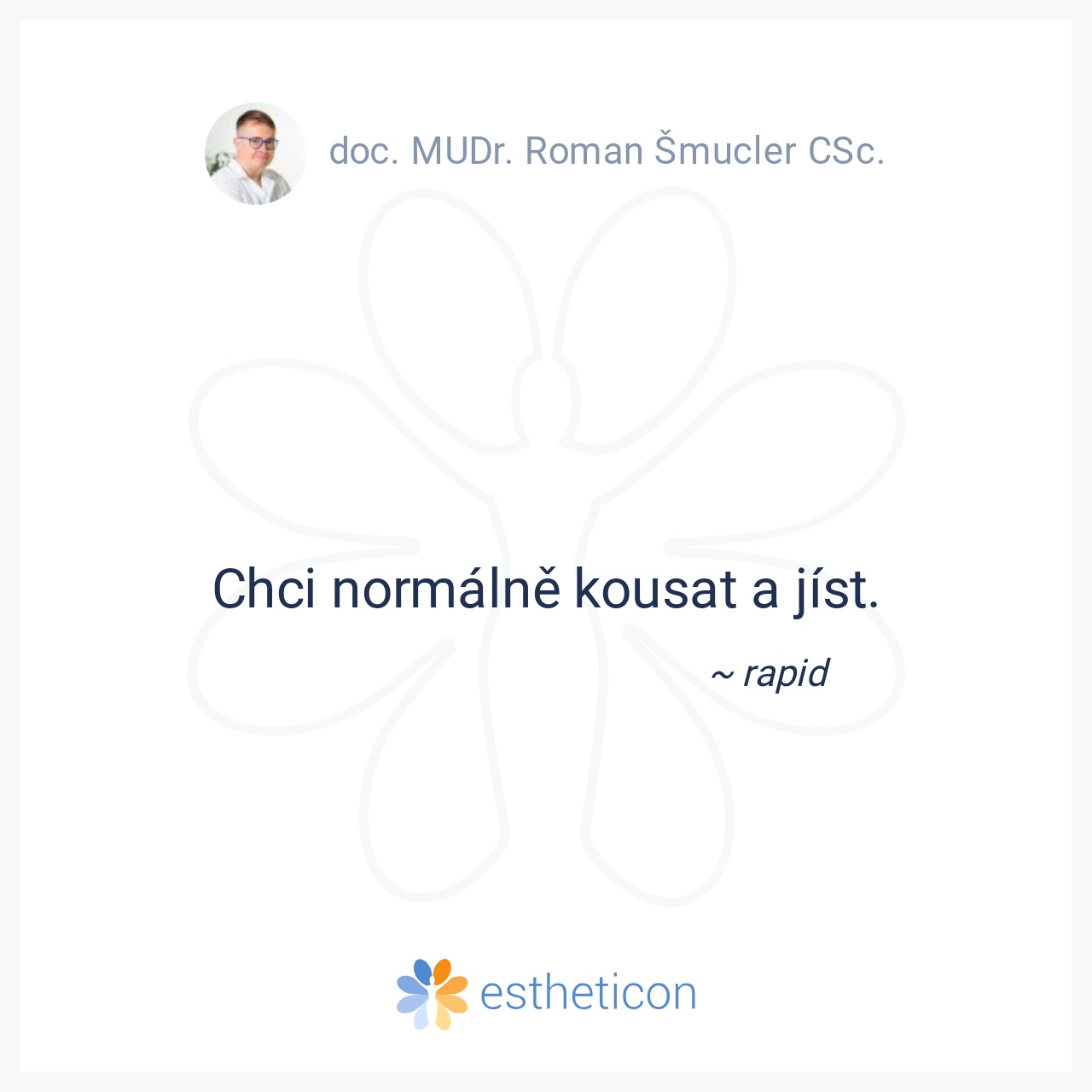 pan doktor smucler je velmi mily a citlivy doktor,ma krasny vztah k pacientum a ma sikovne ruce.jineho bych na implantaty nechtela.