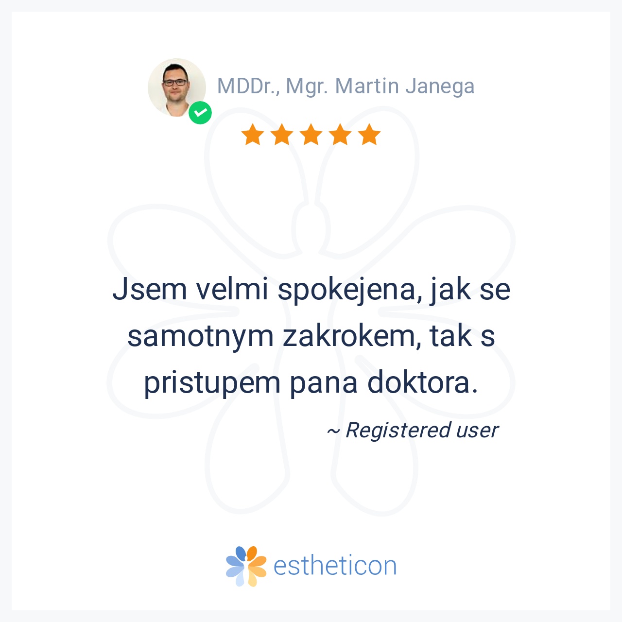 S panem Dr. Janegou jsem se setkala na stomatologické klinice, kde jsem řešila zubní náhradu - implantát. Z pozice pacientky hodnotím velmi kladně, že pan doktor s každým prováděným zákrokem mě srozumitelnou formou přede... Více