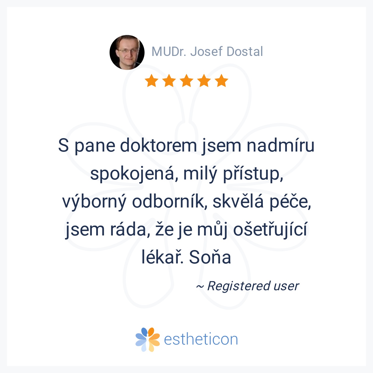 S pane doktorem jsem nadmíru spokojená, milý přístup, výborný odborník, skvělá péče, jsem ráda, že je můj ošetřující lékař. Soňa