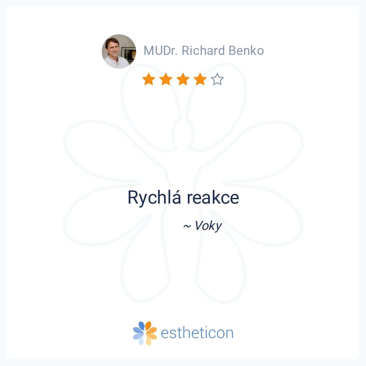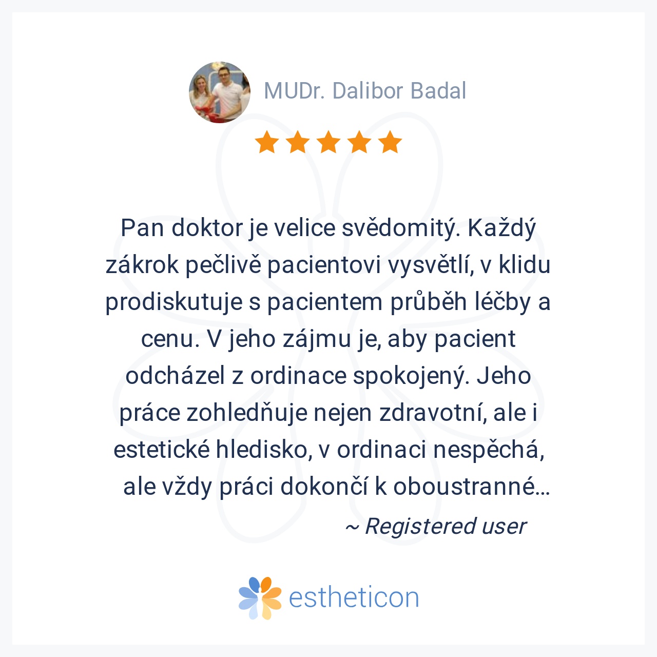 Pan doktor je velice svědomitý. Každý zákrok pečlivě pacientovi vysvětlí, v klidu prodiskutuje s pacientem průběh léčby a cenu. V jeho zájmu je, aby pacient odcházel z ordinace spokojený. Jeho práce zohledňuje nejen zdra... Více