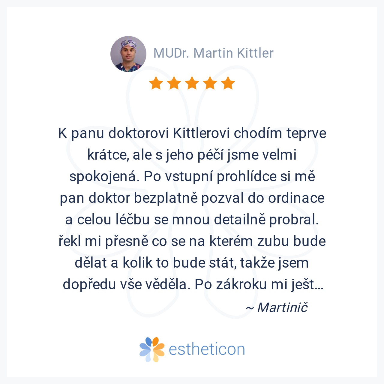 K panu doktorovi Kittlerovi chodím teprve krátce, ale s jeho péčí jsme velmi spokojená. Po vstupní prohlídce si mě pan doktor bezplatně pozval do ordinace a celou léčbu se mnou detailně probral. řekl mi přesně co se na k... Více