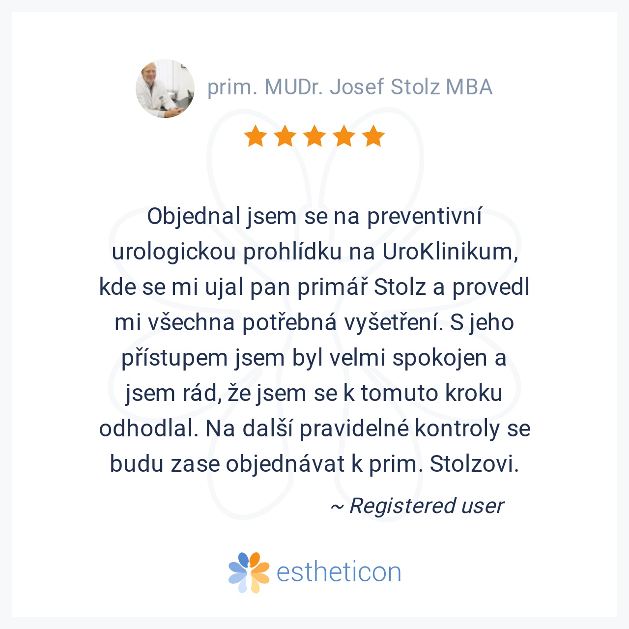 Pan primar mudr. Stolz je skvely clovek i lekar. Péče na klinice je profesionalni. Jsem velmi spokojena. Díky moc.