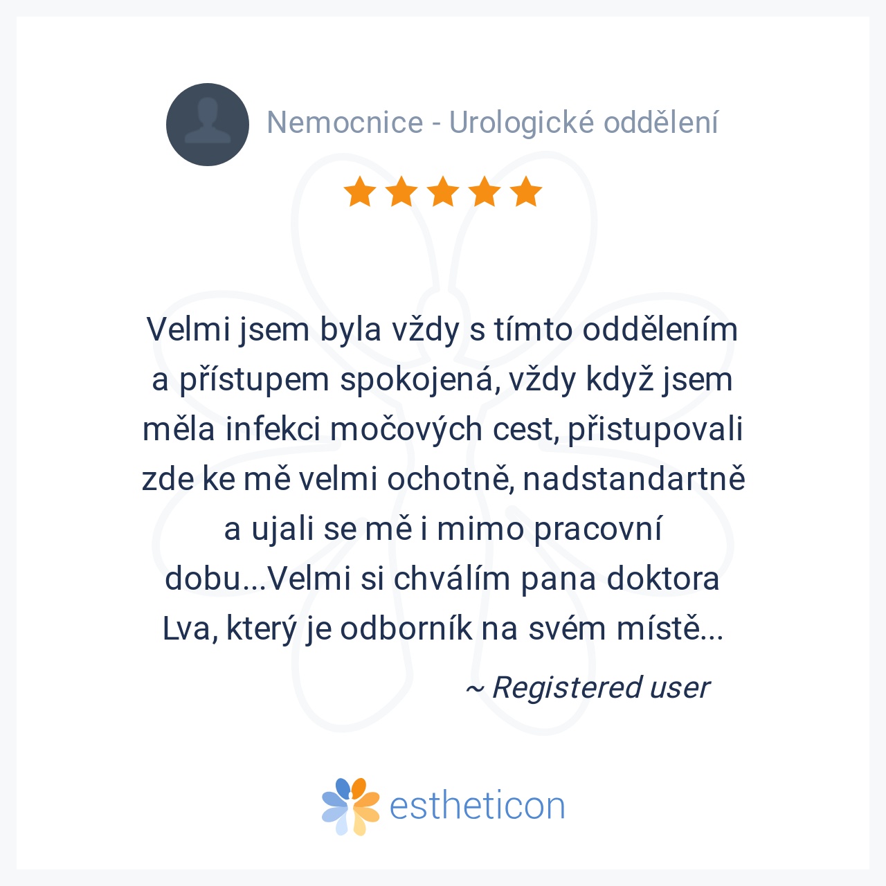 Velmi jsem byla vždy s tímto oddělením a přístupem spokojená, vždy když jsem měla infekci močových cest, přistupovali zde ke mě velmi ochotně, nadstandartně a ujali se mě i mimo pracovní dobu...Velmi si chválím pana dokt... Více