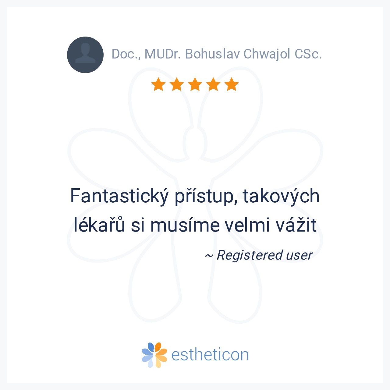 Pan doktor má lidský přístup, je výborný profesionál, který nenechá nic náhodě a pečlivě se o mě stará. Jsem s ním velmi spokojená.